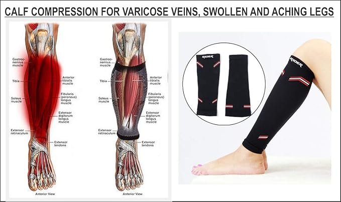 About this item INCREASE BLOOD CIRCULATION WITH GRADUATED COMPRESSION – These medical calf compression stockings provide so that to enhance blood circulation in your legs, helps to constrict the wall of the veins, reduce varicose veins, pain, fatigue, shin splints or calf cramps. The fabric is strong to provide you premium support and lasting compression, comfort fit and breathable, different from other calf sleeves that are too tight. RECOVERY MORE EFFECTIVE FROM PAIN – Are you still worry about the spider veins, edema, fatigue, soreness or swelling? Let our calf compression sleeve help you to promote recovery, reduce injury. Of…